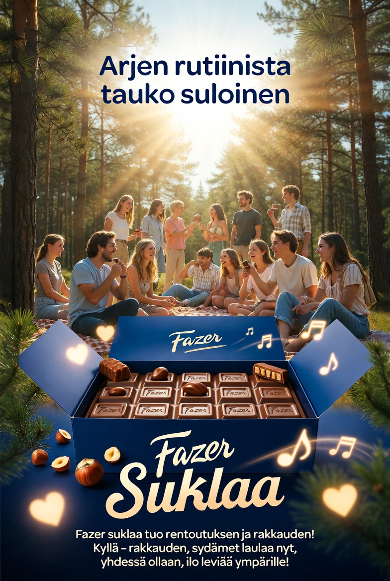 The lyrics tell a heartwarming story of taking a break from the daily grind, embodying the spirit of connection, love, and the special magic of Finnish chocolate that brings people together. Each note invites listeners to savor life’s sweet moments, making it the perfect soundtrack for every chocolate lover.